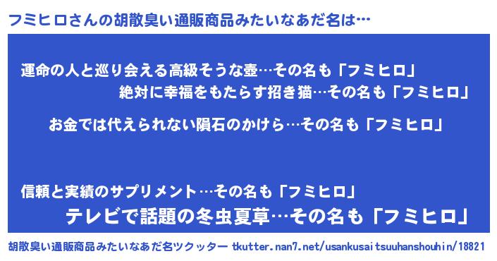 フミヒロさんの胡散臭い通販商品みたいなあだ名をツクッター!