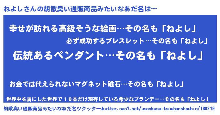 | 意味不明あだ名 | 『とにかく怪しいねよし』 |