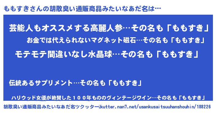 | 欧米人風あだ名 | 『マイケルももすき』『ダニエルももすき』 |