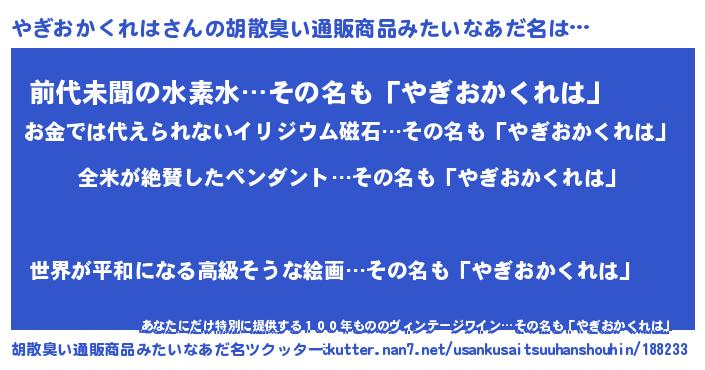 | 欧米人風あだ名 | 『ウサインやぎおかくれは』 |