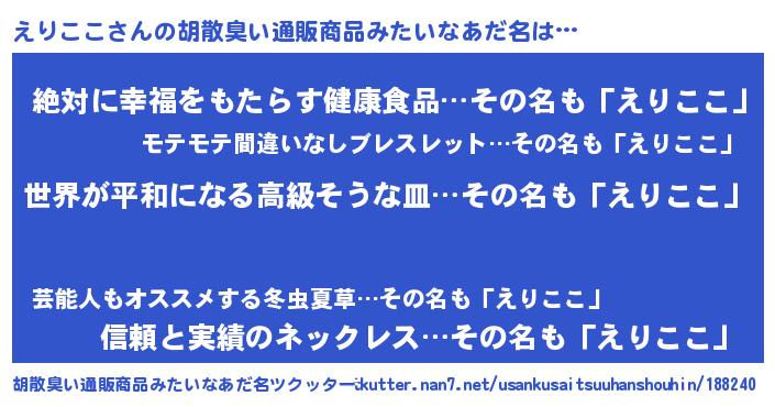 | 男性向けラノベタイトル風あだ名 | 『転生したらえりここだった件』 |