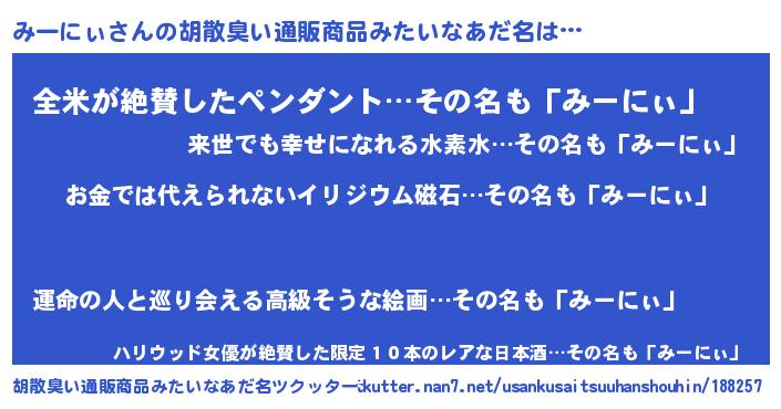 | ヘコむあだ名 | 『みー太郎』『みーにぃ(震え声)』 |