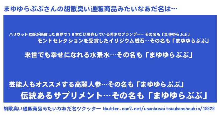 | ヒーロー風カッコイイあだ名 | 『ネオマユユラブブ』『仮面マユダー』 |
