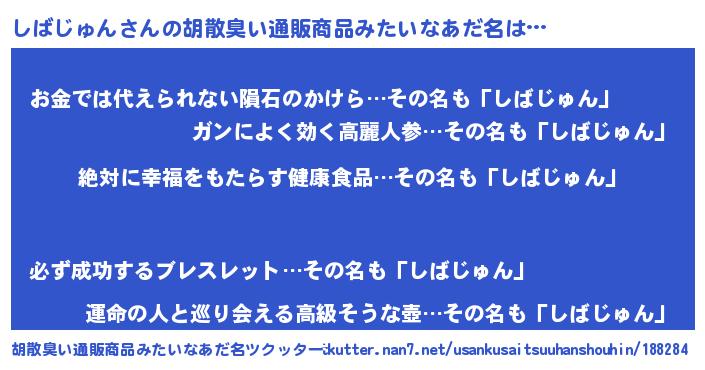 | 男性向けラノベタイトル風あだ名 | 『しばじゅんという概念が存在しない退屈な世界 』 |