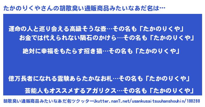 | ヘコむあだ名 | 『たかのりくや(笑)』『レバニラ』 |
