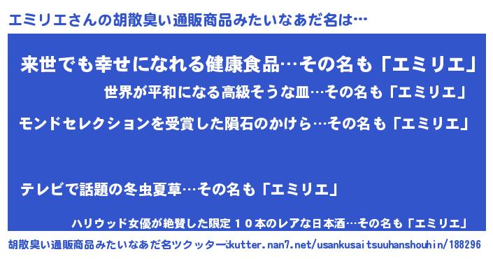 | ヘコむあだ名 | 『エミリエ(遠い目)』『豆乳』 |
