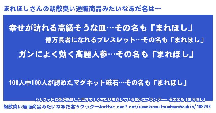 | 意味不明あだ名 | 『自称まれほし』『まれほしフォーエバー』 |