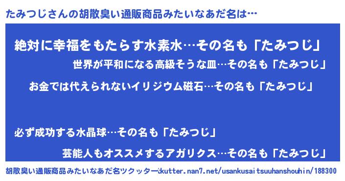 | ヒーロー風カッコイイあだ名 | 『友情の使者たみつじ』『ネオタミツジ』 |