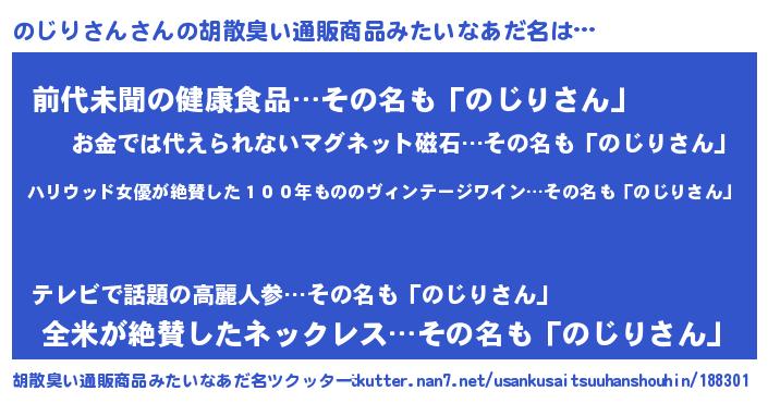 | 意味不明あだ名 | 『住所不定無職のじりさん(2歳)』 |