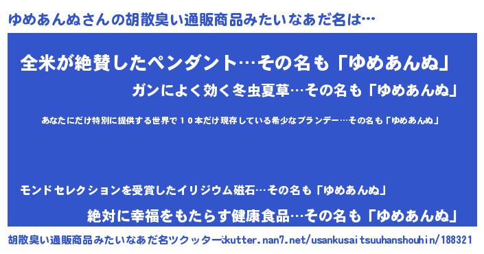 | 意味不明あだ名 | 『住所不定無職ゆめあんぬ(84歳)』 |