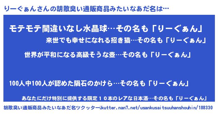 | 肩書あだ名 | 『りーぐぁん大統領』『りーぐぁん店長』 |