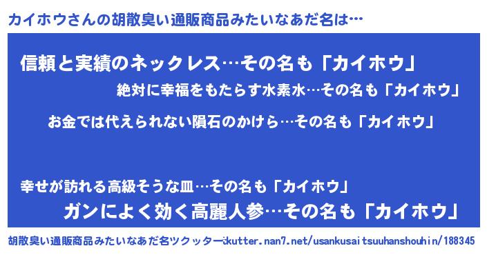 | ヘコむあだ名 | 『カイっちょ』『カイホウ(笑)』 |