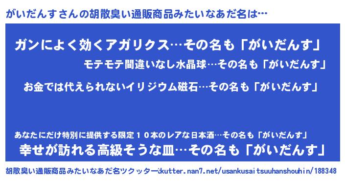 | 恥ずかしいあだ名 | 『ボンバーヘッドがい』『がいっちょ』 |