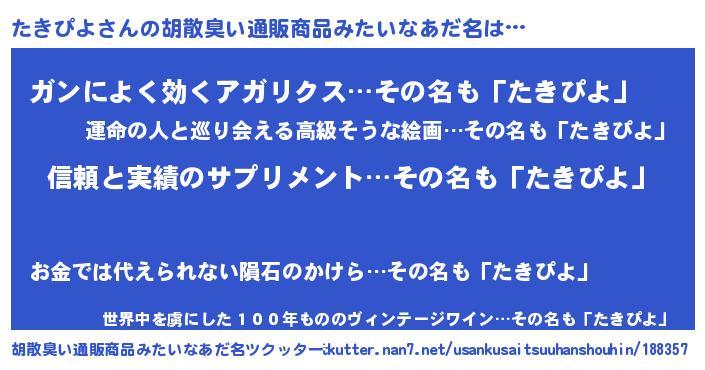 | ヘコむあだ名 | 『たきを』『豆乳』『たきにー』 |
