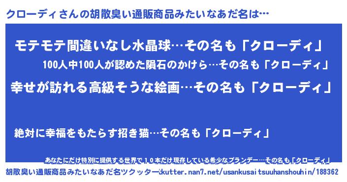 | 意味不明あだ名 | 『クローディフォーエバー』 |