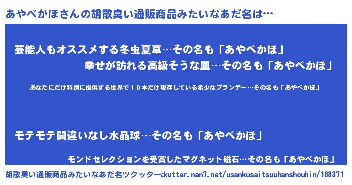 | ヒーロー風カッコイイあだ名 | 『仮面アヤダー』『究極戦士アヤベカホ』 |