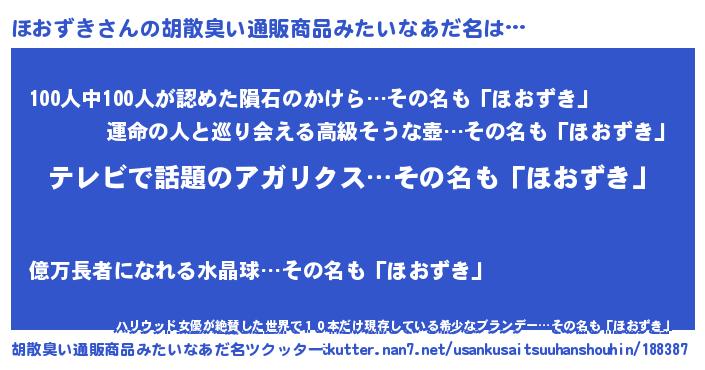 | 男性向けラノベタイトル風あだ名 | 『Re:ほおずきから始める異世界生活』 |