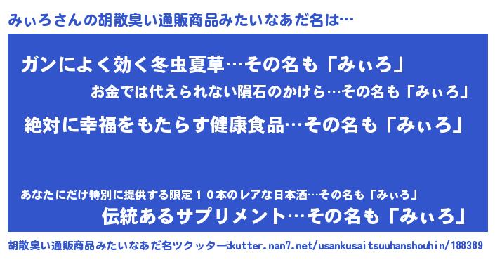 | 男性向けラノベタイトル風あだ名 | 『緋弾のミィロ』『魔法科高校のみぃろ』 |