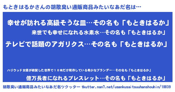 | 意味不明あだ名 | 『自称もときはるか』 |