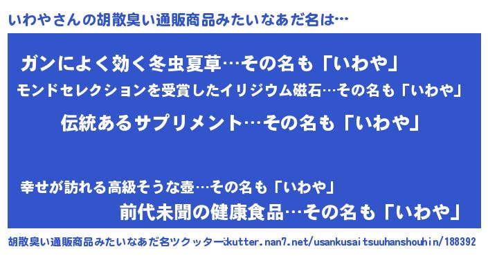 | 意味不明あだ名 | 『とにかく怪しいいわや』『自称いわや』 |