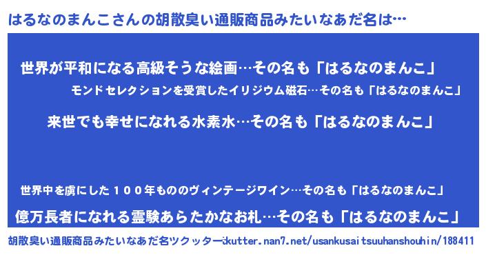 | 伝説のあだ名 | 『古より伝わる勇者はるなのまんこ』 |