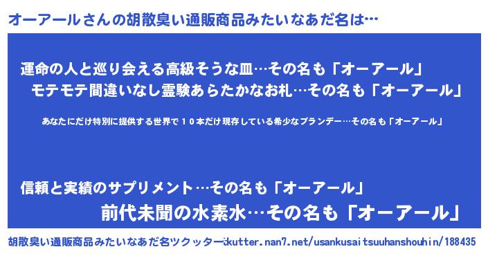 | ヘコむあだ名 | 『酢こんぶ』『オーアール(爆)』 |