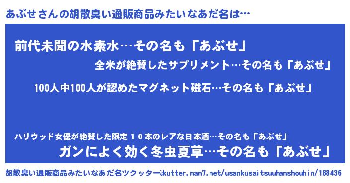 | ヒーロー風カッコイイあだ名 | 『正義の使者あぶせ』『ネオアブセ』 |