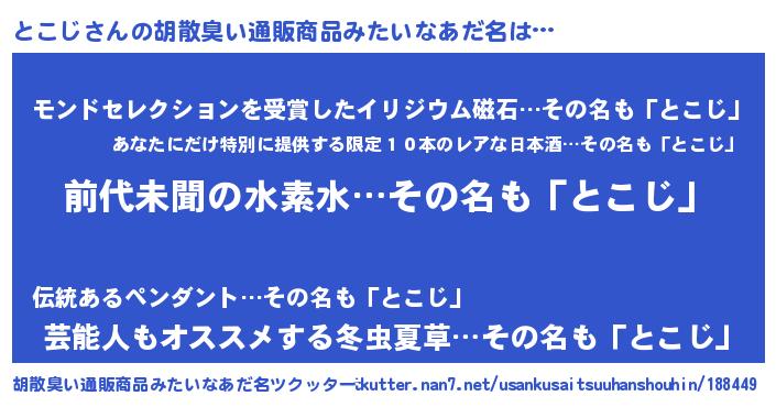 | ヘコむあだ名 | 『とこじ(苦笑)』『とこっぺ』 |