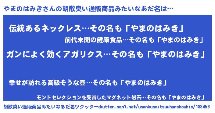 | 意味不明あだ名 | 『自称やまのはみき』 |