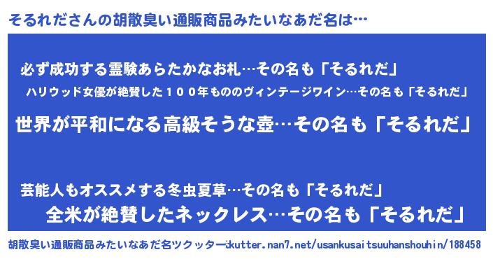 | 男性向けラノベタイトル風あだ名 | 『転生したらそるれだだった件』 |