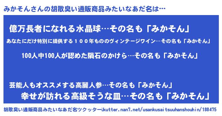 | 肩書あだ名 | 『みかそん学部長』『みかそん中尉』 |