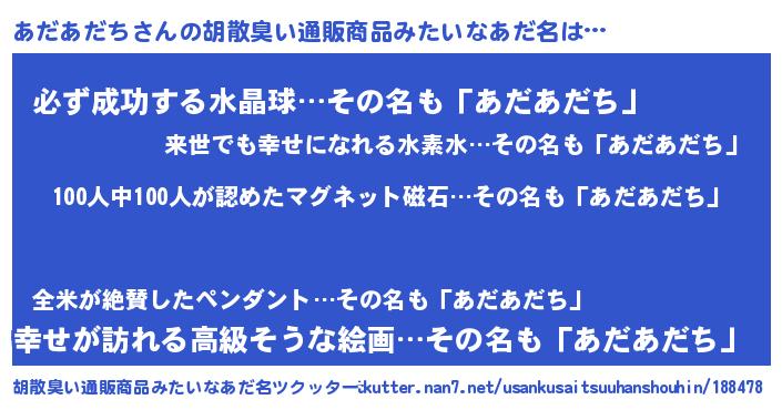 | ヘコむあだ名 | 『あだにー』『牛乳』『あだっちょ』 |