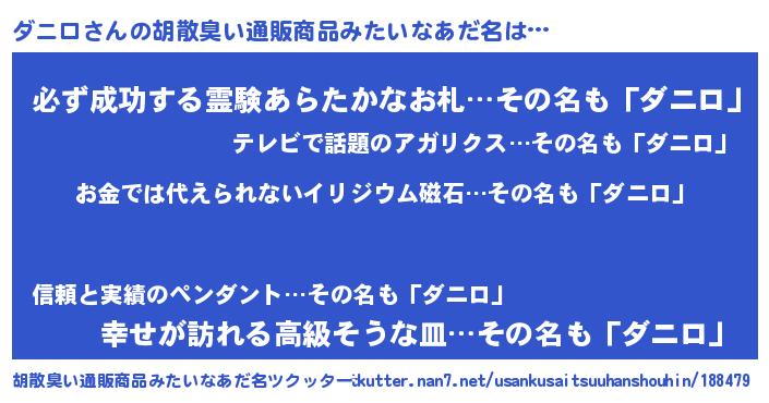 | ヘコむあだ名 | 『ダニにゅー』『牛乳』『ダニっちょ』 |