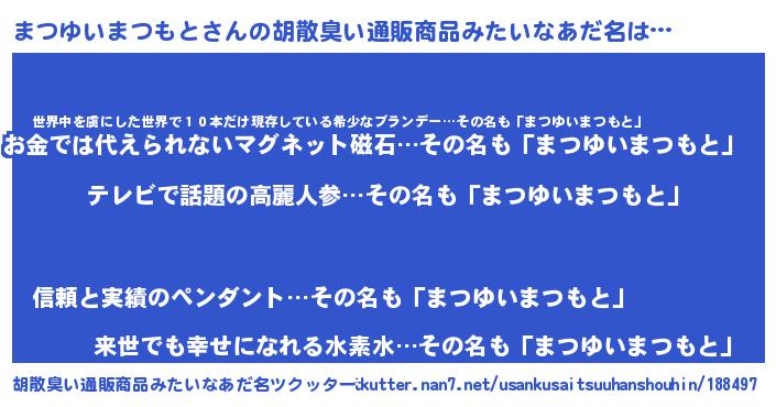 | 意味不明あだ名 | 『自称まつゆいまつもと』 |