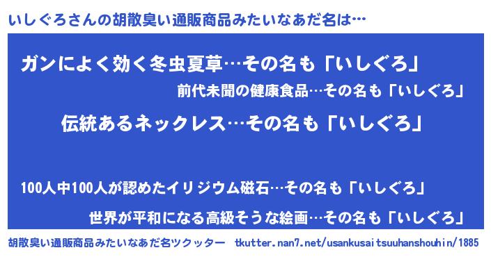 | 男性向けラノベタイトル風あだ名 | 『いしぐろの嫁は女の子じゃないと思った?』 |