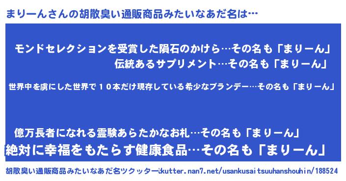 | ヘコむあだ名 | 『まりーん(苦笑)』『まりっちょ』 |