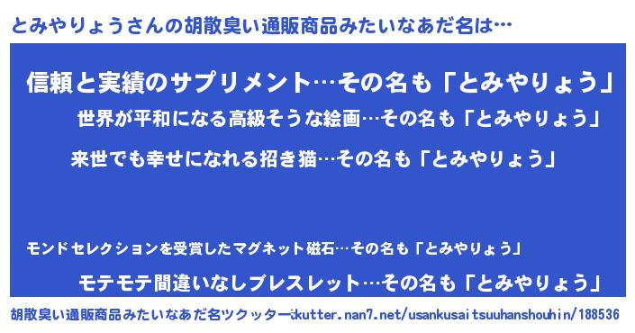 | 男性向けラノベタイトル風あだ名 | 『とみやりょうという概念が存在しない退屈な世界 』 |