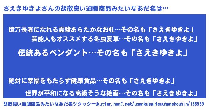 | 男性向けラノベタイトル風あだ名 | 『さえきゆきよの嫁は女の子じゃないと思った?』 |