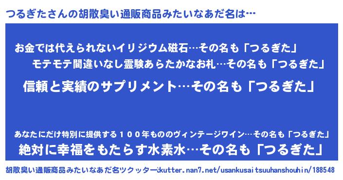 | ヘコむあだ名 | 『つるお』『つるぎた(笑)』『豆乳』 |