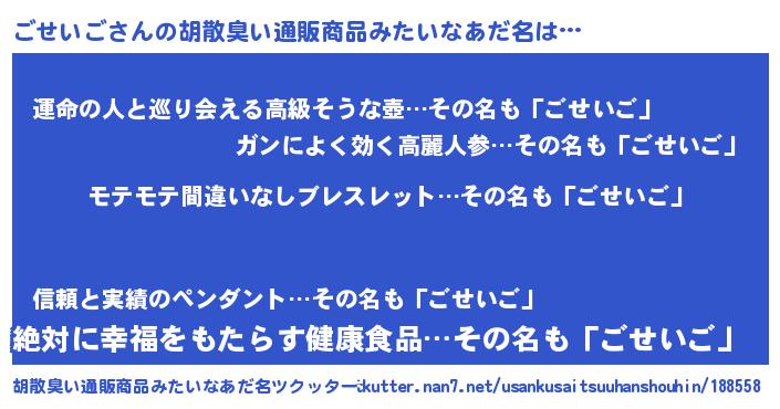 | ヘコむあだ名 | 『ごせふぇ~』『酢こんぶ』『ごせお』 |
