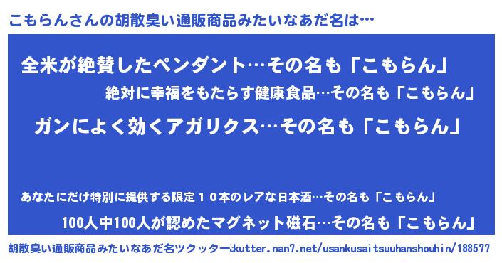 | 恥ずかしいあだ名 | 『コモランデラックス』『コモリンリン』 |