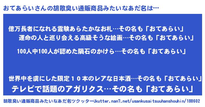 | ヘコむあだ名 | 『おてっふぃ~』『酢こんぶ』 |