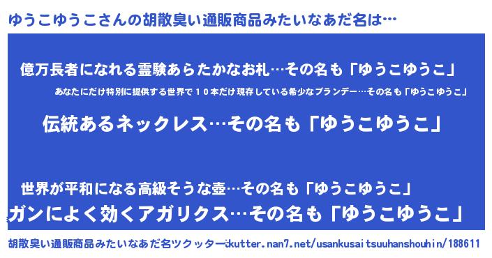 | 肩書あだ名 | 『ゆうこゆうこ少将』『ゆうこゆうこ店長』 |