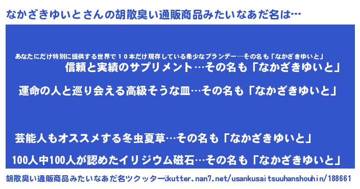 | ファンタジー風あだ名 | 『エターナルナカザキユイトー』 |