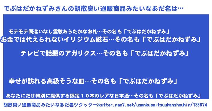 | 意味不明あだ名 | 『自称でぶはだかねずみ』 |