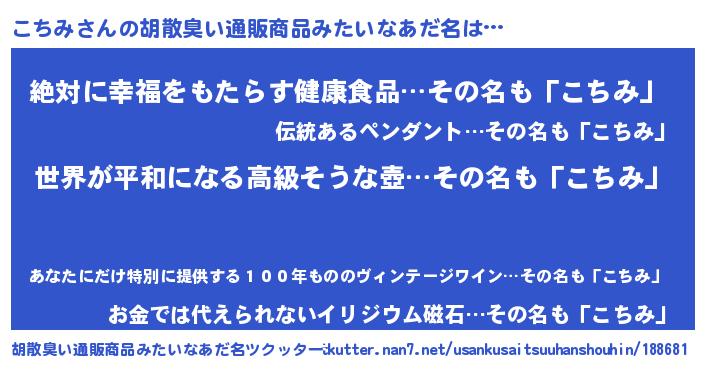 | ヒーロー風カッコイイあだ名 | 『ウルトラこちみマン』『ネオコチミ』 |