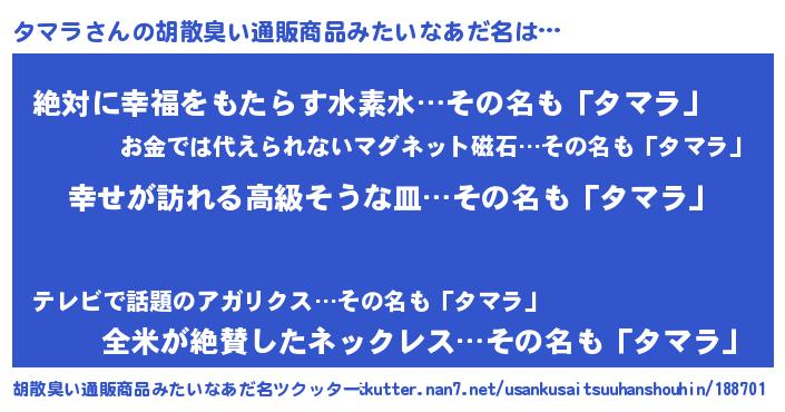 | 意味不明あだ名 | 『タマラフォーエバー』『永久保存タマラ』 |
