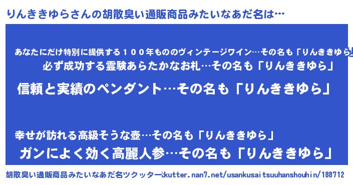 | 意味不明あだ名 | 『とにかく怪しいりんききゆら』 |