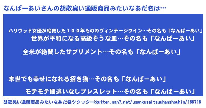 | 意味不明あだ名 | 『とにかく怪しいなんばーあい』 |