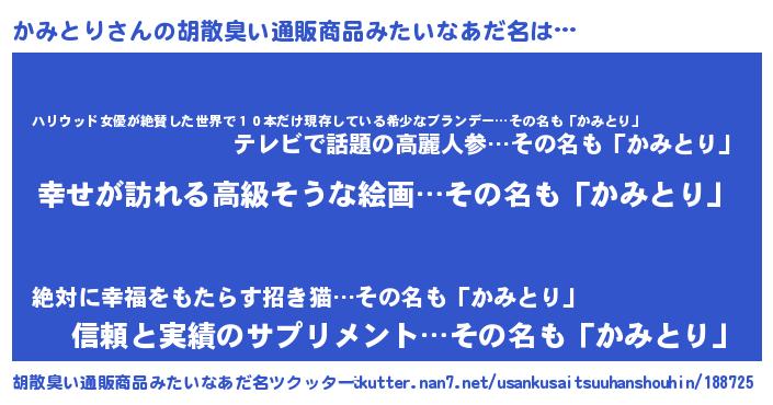 | 意味不明あだ名 | 『かみとりフォーエバー』『自称かみとり』 |